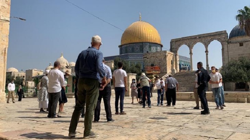 وأفاد شهود عيان، بأن المستوطنين اقتحموا باحات الأقصى، من جهة باب المغاربة، ونفذوا جولات استفزازية، وأدوا طقوسا تلمودية، تزامنا مع ثاني أيام عيد "العرش العبري".