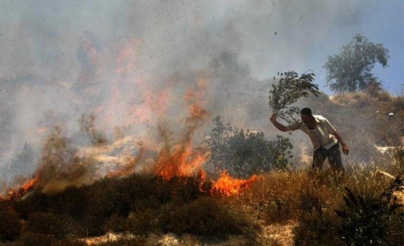 وأوضح دغلس،" أن المواطنين يحاولون السيطرة على النيران في المنطقة الجنوبية، المزروعة غالبيتها باشجار الزيتون".
