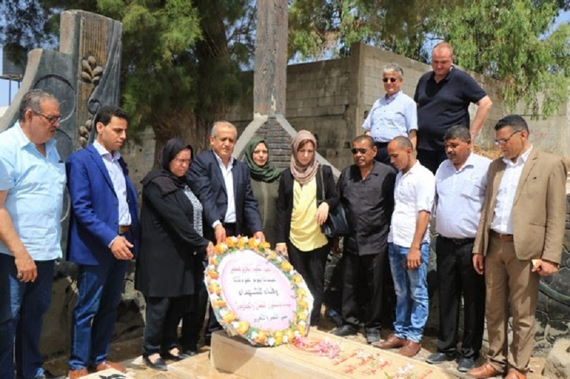 ووضع الوفد الذي تقدمه عضو المكتب السياسي الرفيق جميل مزهر، أكاليل الورد على أضرحة قادة الجبهة الشهداء، وفي مقدمتهم القادة/ القائد محمد الأسود " جيفارا غزة"، ورفيقيه عبد الهادي الحايك، وكامل العمصي، والقائد محمد أبو النصر ورفاقه حسن الزريعي، عبدالله السميري، عامر زيدان، وضريح القائد الراحل د.رباح مهنا عضو المكتب السياسي.