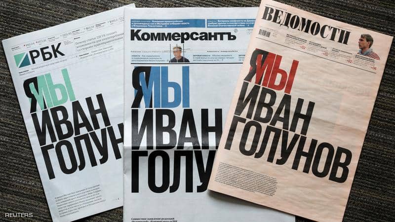 موسكو|| اتفقت 3 صحف روسية، اليوم الاثنين، بنشر صفحتها الأولى بشكل مشترك لدعم الصحفي الاستقصائي الروسي إيفان غولونوف، المتهم بالإتجار بالمخدرات.