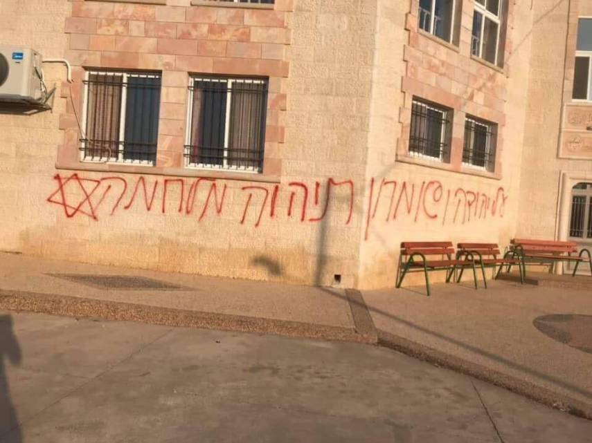 بالصور|| مستوطنون يعطبون مركبات ويخطون شعارات عنصرية على الجدران برام الله