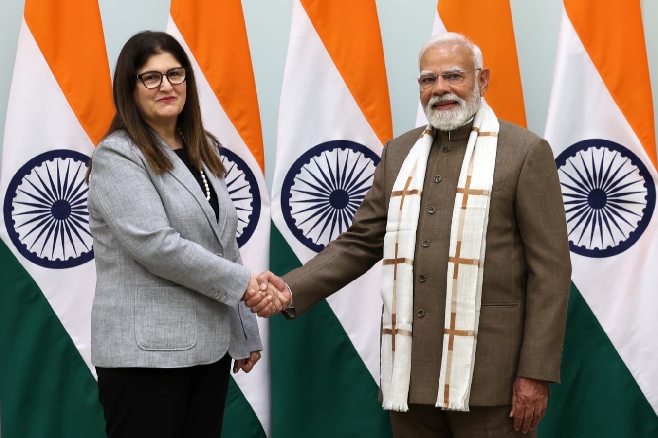الكوفية رام الله: التقت وزيرة الخارجية والمغتربين فارسين شاهين، مع رئيس الوزراء الهندي ناريندرا مودي، في اليوم الثالث من زيارتها الرسمية إلى جمهورية الهند، ومشاركتها في أعمال الدورة الثانية للاجتماع الوزاري العربي الهندي، المنعقد في العاصمة نيودلهي يومي 30 و31 كانون الثاني الجاري.