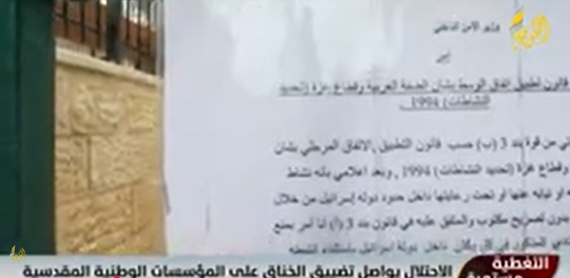 الاحتلال يواصل تضييق الخناق على المؤسسات الوطنية المقدسية