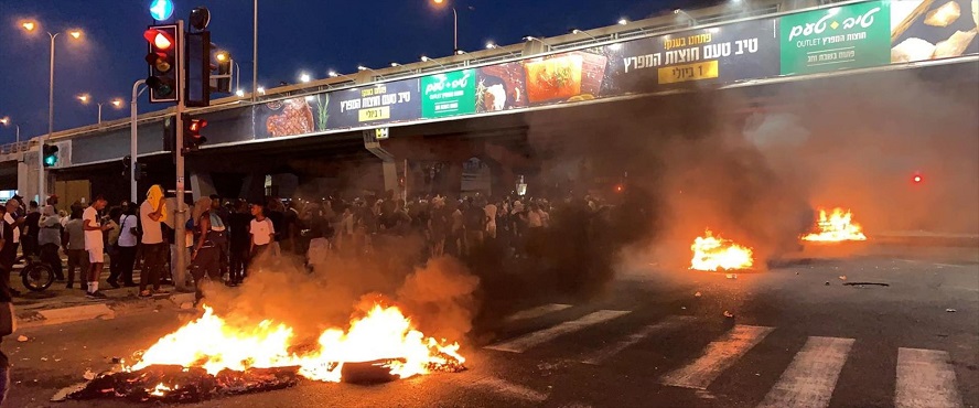 وعلى إثر ذلك أغلق مئات المتظاهرين الغاضبين، مساء الأحد والإثنين، العديد من الشوارع في إسرائيل وأضرموا النيران في إطارات السيارات وألقوا الحجارة والمفرقعات النارية على الشرطة.