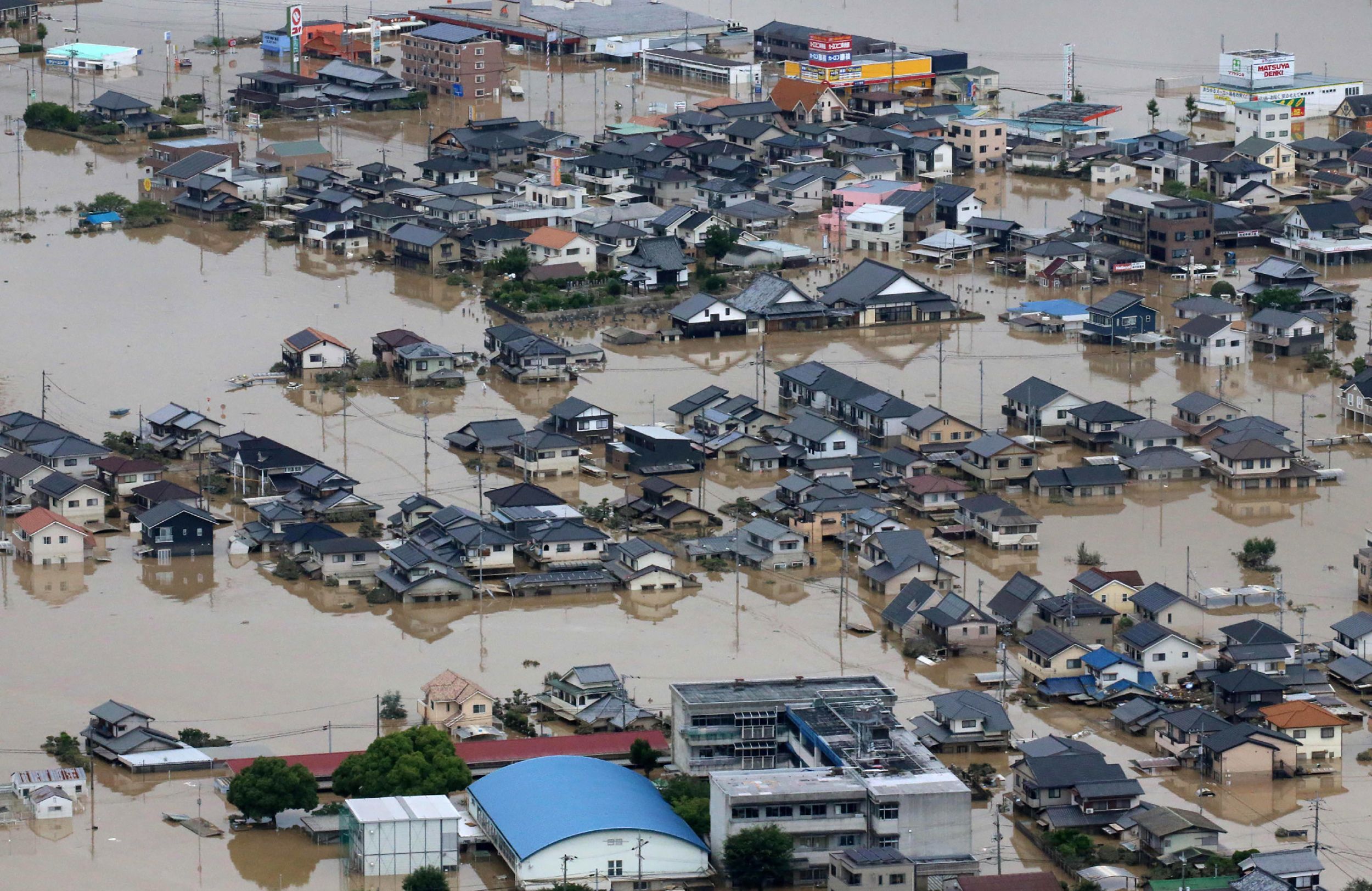وبلغ معدل ارتفاع مياه الأمطار في بعض أجزاء كيوشو ما يصل إلى ألف ملليمتر منذ يوم الجمعة الماضي، أي ما يعادل الأمطار التي تسقط عادة خلال شهر يوليو تموز بأكمله حسب هيئة الإذاعة والتلفزيون اليابانية. ويتوقع خبراء الأرصاد سقوط المزيد من الأمطار بمعدل 300 ملليمتر في بعض المناطق مساء الخميس.