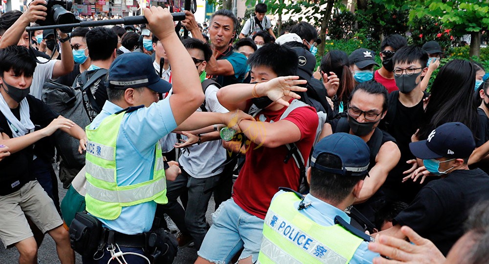 وشارك ملايين في احتجاجات بالشوارع واقتحم مئات مبنى البرلمان في الأول من يوليو/ تموز احتجاجا على مشروع قانون معلق حاليا يقضي بإرسال المشتبه بارتكابهم جرائم في هونغ كونغ إلى الصين للمثول للمحاكمة هناك.