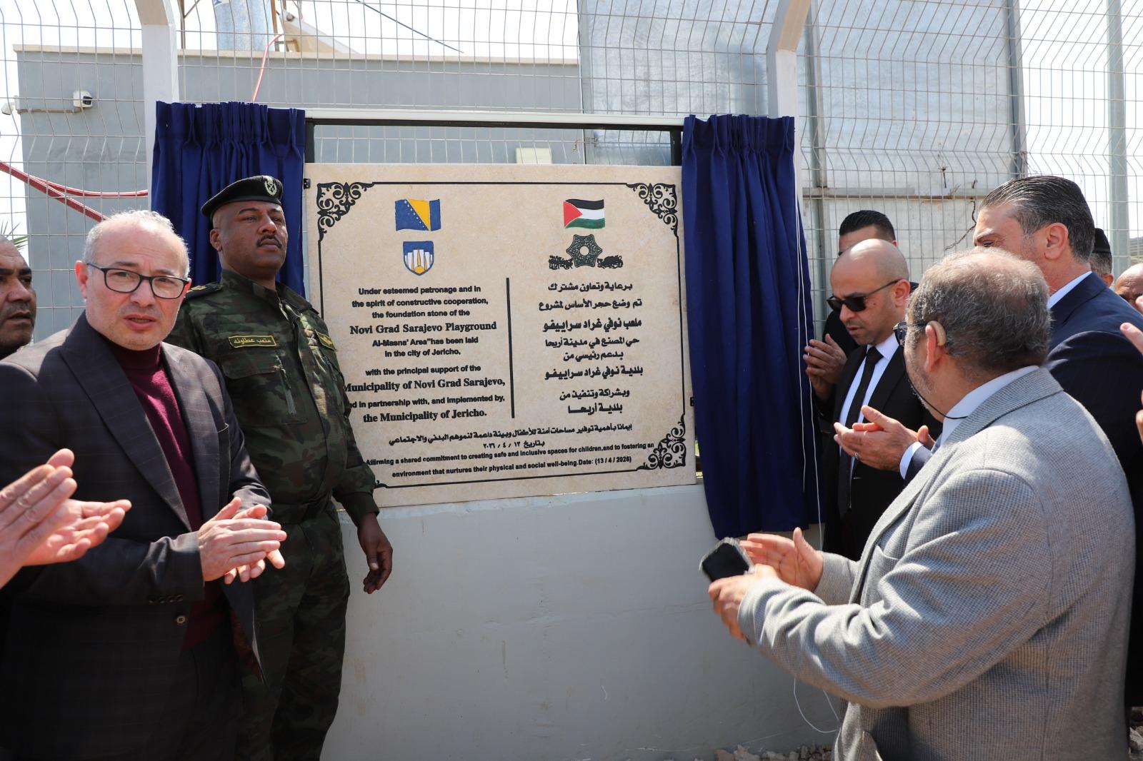 إزاحة الستار عن حجر أساس ملعب الأحياء في أريحا بدعم بوسني