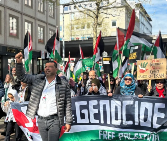 الكوفية نظمت الجالية الفلسطينية في مدينة بريمن الألمانية وضواحيها، اليوم الاثنين 27 نيسان 2026، تظاهرة حاشدة جابت الشوارع الرئيسية للمدينة، تنديداً باستمرار العمليات العسكرية الإسرائيلية وما وصفه المشاركون بالمجازر المتواصلة بحق الفلسطينيين في قطاع غزة والضفة.