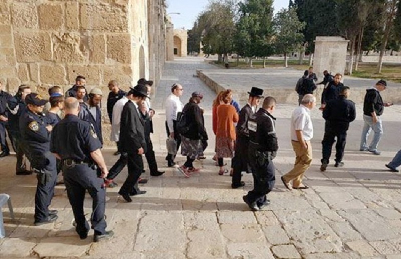 وتستمر اقتحامات المستوطنين لباحات المسجد الأقصى لأداء جولات استفزازية لسكان المدينة بطريقة متكررة وتحت حراسات أمنية مشددة.