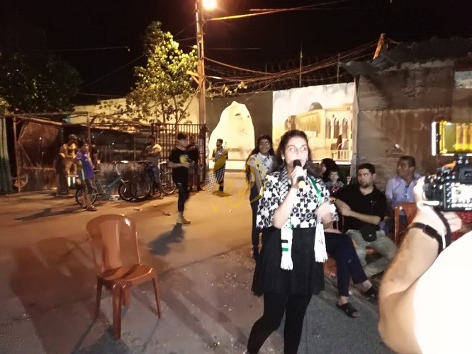 من ميدان الاحتجاجات التي شهدها المخيم ومن مكان انتفاضة اللاجئين الذي بقي مستمراً كل ليلة بأجواء وسهرات متعددة بعد أن خمدتْ نيران الإطارات وعُلِّقت الإضرابات الذي حرِص بعض الشباب الفاعلين على بقائها بشكل ثقافي وحضاري عبر برامج متنوعة من ندوات سياسية وحقوقية وإنشاد وغناء وشعر ومنبر حر كي تصل الرسالة بشكل يومي إلى المعنيين، اشتعلت الحناجر بأصواتها في كل ليل، ليصل صداها إلى كافة الأرجاء.