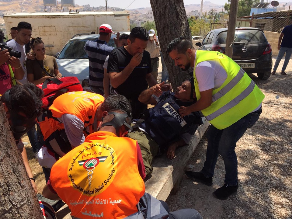 وكان المصور الصحفي اياد حمد، أصيب بعد اعتداء جنود الاحتلال الإسرائيلي عليه خلال قمع تظاهرة واد الحمص، التي انطلقت بعد أداء صلاة الجمعة مباشرة.