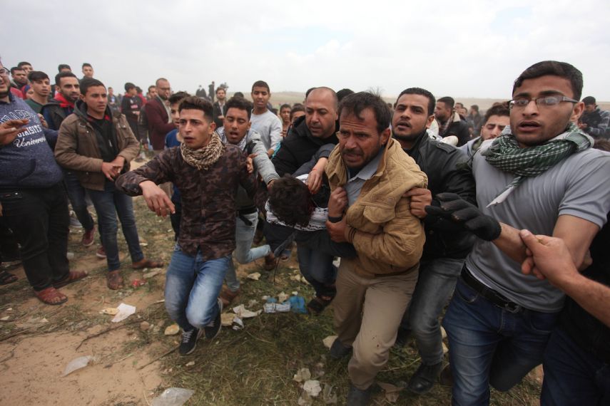 ومنذ 30 مارس الماضي، يتجمهر آلاف الفلسطينيين، في عدة مواقع قرب السياج الفاصل بين القطاع وإسرائيل، ضمن المشاركة في مسيرات "العودة" للمطالبة بعودة اللاجئين الفلسطينيين إلى قراهم ومدنهم التي هجروا منها عام 1948.
