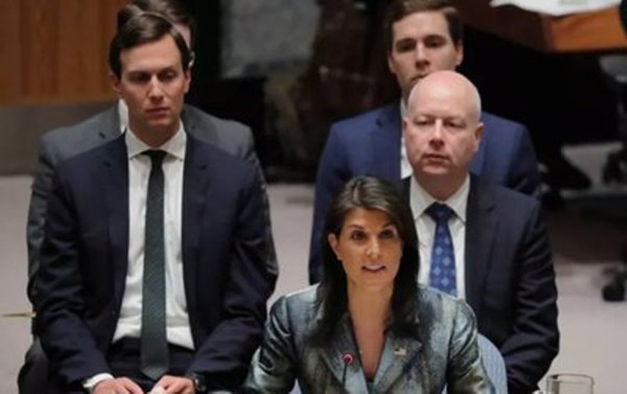 القدس المحتلة: بحث مستشار الرئيس الأميركي، جاريد كوشنر ومبعوث عملية التسوية جيسون غرينبلات إلى الشرق الأوسط والسفيرة الأميركية لدى الأمم المتحدة، نيكي هيلي، الجمعة، مع الأمين العام للأمم المتحدة أنطونيو غوتيريس، الوضع في الشرق الأوسط والإجراءات الأمريكية الأخيرة في مجال التعاون مع الأمم المتحدة.