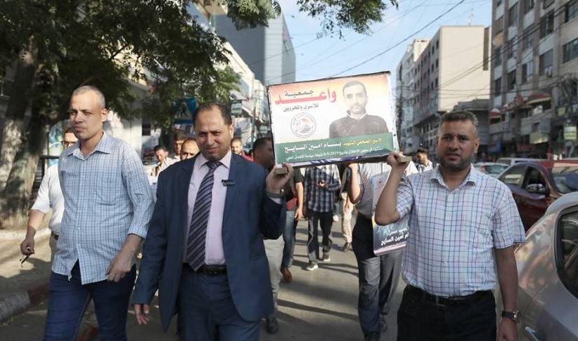 وحمل الصحفيون، الذين انطلقوا من أمام برج الشروق بمدينة غزة، نعشًا رمزياً للشهيد "السايح" الذي قضى نحبه في سجون الاحتلال مساء يوم الأحد الماضي نتيجة الإهمال الطبي الذي مارسته إدارة سجون الاحتلال بحقه، واحتجازه والتحقيق معه في ظروف غير إنسانية أو قانونية.