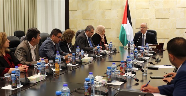 رام الله: التقى رئيس الوزراء د. رامي الحمد الله، اليوم الخميس في مكتبه، برام الله، وفدًا من ممثلي المؤسسات والفعاليات الأهلية والمجتمع المدني والهيئة المستقلة لحقوق الإنسان، بحضور محافظ محافظة رام الله والبيرة د. ليلى غنام.