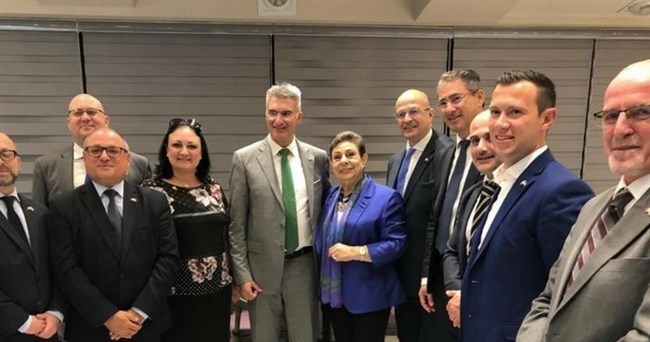 رام الله:  التقت عضو اللجنة التنفيذية لمنظمة التحرير الفلسطينية د. حنان عشراوي اليوم، وزير خارجية مالطا كارميلو أبيلا والوفد المرافق له بحضور رئيس المكتب التمثيلي لجمهورية مالطة روبن غاوتشي، حيث جرى بحث آخر التطورات والمستجدات السياسية.