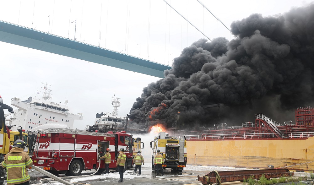 إصابة 12 بحارا جراء حريق بناقلتي نفط في كوريا الجنوبية