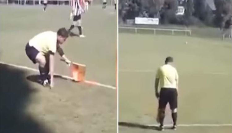 ويظهر الحكم المساعد في الفيديو وهو يرفض التدخلات لإبعاده عن الملعب، مصرًا على الجري إلى أن يسقط على الأرض، وسط ضحكات الموجودين.