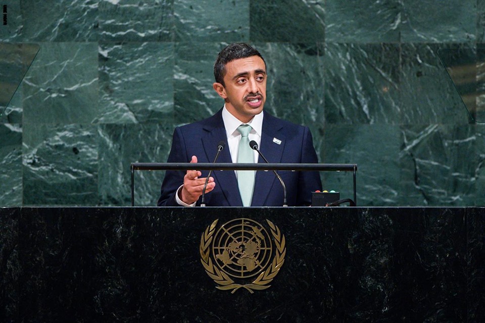 وقال بن زايد خلال كلمته أمام الجمعية العامة للأمم المتحدة، اليوم السبت، أن الاتفاق النووي الإيراني لم يصحح سلوك إيران، واصفاً الاعتداءات على السعودية، وآخرها على منشآت "أرامكو"، بأنها لا تمس بأمن المملكة وحسب بل تطال الاقتصاد العالمي.
