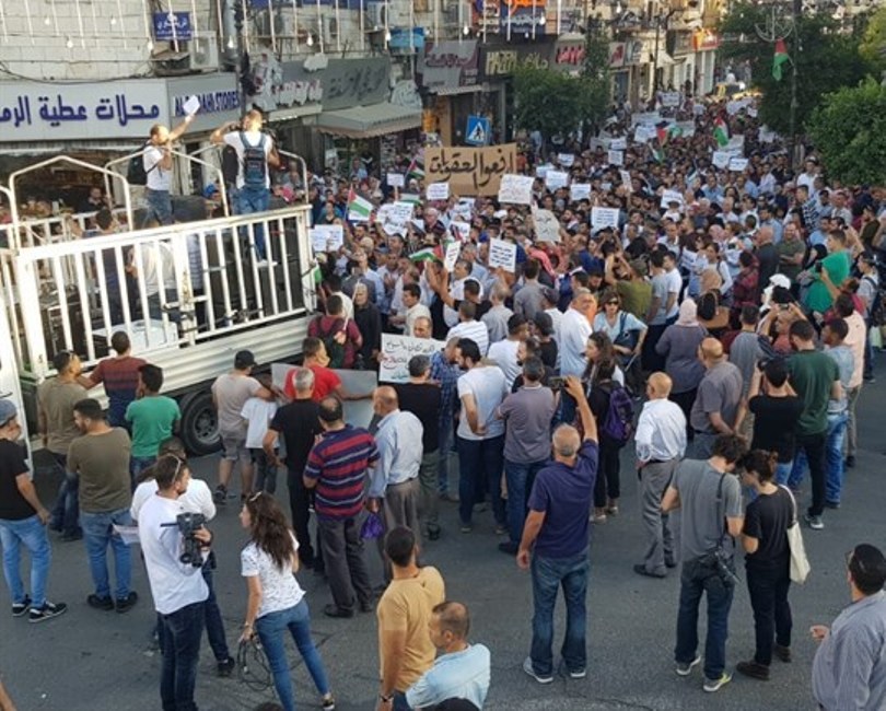 واحتشد قرابة ال1000 شخص تلبية لدعوة "الحراك الشعبي لرفع العقوبات عن غزة" فضلا عن المطالبة بإنهاء الانقسام بين الضفة الغربية وقطاع غزة.