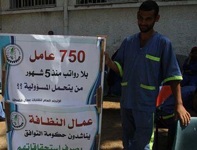 الكوفية وأكد القدرة في تصريح صحفي، أن عمال شركات النظافة توقفوا عن العمل جراء عدم دفع حكومة "الحمد الله" مستحقاتهم المالية لخمسة أشهر سابقة.
