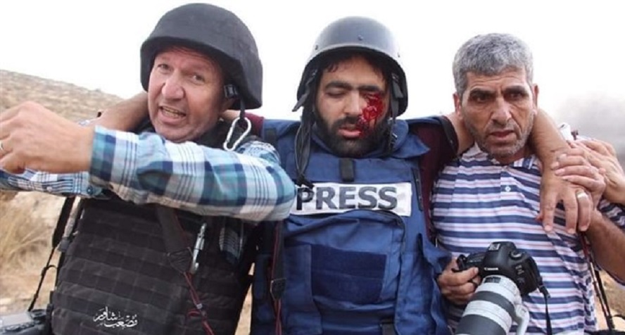 وقال البيان، إن "الزميل عمارنة 35 عامًا ويعمل مع وكالة سند قد أصيب ظهر اليوم برصاصة في عينه اطلقها جيش الاحتلال، نحوه اثناء تغطيته الصحفية لفعالية مناهضة للاستيطان بقرية صوريف شمال الخليل".