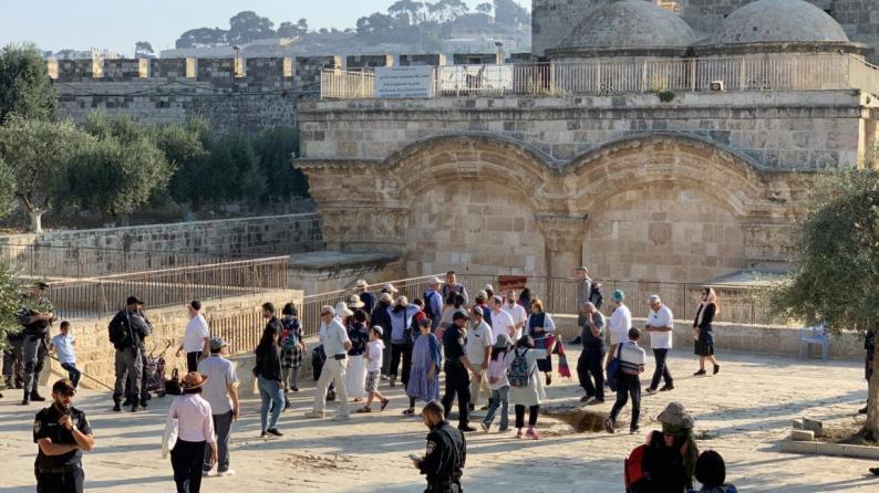 وأفادت مصادر في الأوقاف الإسلامية، بأن 103 مستوطنين و87 طالبا يهوديا قاموا بجولات استفزازية في باحات الأقصى من جهة باب المغاربة، وسط محاولاتهم أداء طقوس تلمودية فيه، إلى أن غادروه من باب السلسلة.