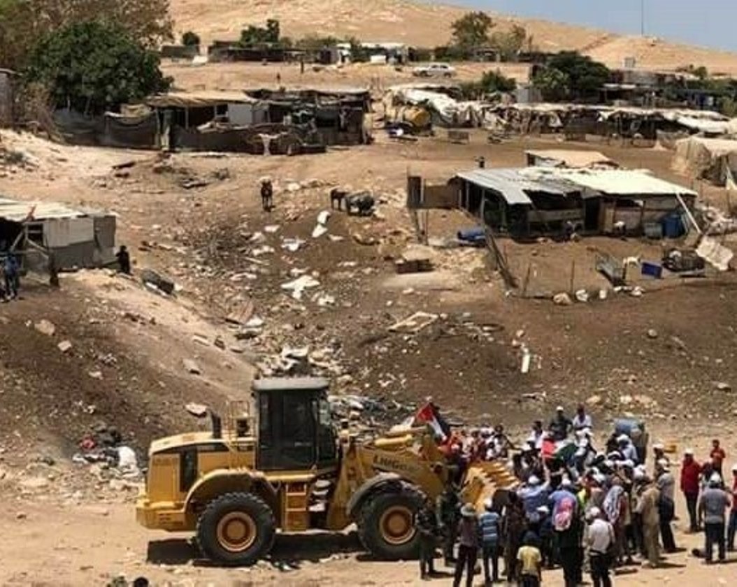 وكان قد تصدى عشرات المواطنين ونشطاء المقاومة وأهالي الخان الأحمر منذ ساعات الصباح لجرافات الاحتلال التي تخطط لهدم التجمعات البدوية في المنطقة التي تقع جنوب شرق القدس، حيث تضم 46 تجمعًا بدويًا.