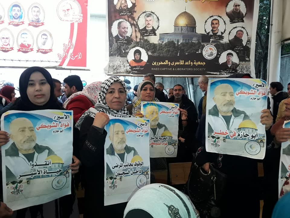 ورفع المشاركون صور الأسير القائد فؤاد الشوبكي، وهو أكبر الأسرى سنّاً، ومعتقل منذ عام 2006، رافعين لافتات تطاب بانقاذ حياته، إذ يعاني من مرض السرطان ومن أمراض في القلب والمعدة والعيون.