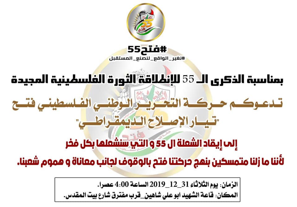 وذكر تيار الإصلاح، "نتشرف بدعوتكم لمشاركتنا في إيقاد شعلة الانطلاقة، وذلك يوم غد الثلاثاء الساعة الرابعة عصرا، في باحة مقر قيادة تيار الإصلاح بحي صفورية".