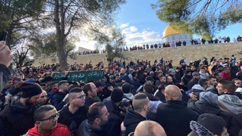 وانطلق موكب التشييع من منزله إلى المسجد الأقصى المبارك، حيث أدى آلاف المصلين صلاة الجنازة على روحه، قبل نقله إلى مقبرة باب الأسباط ليدفن هناك.