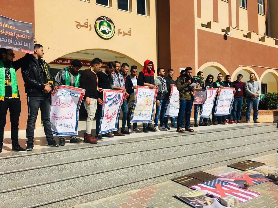 صور|| الشبيبة تشارك في وقفة احتجاجية برفح رفضا لـ"صفقة ترامب"
