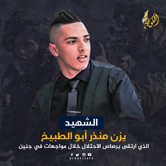 وأعلنت مصادر طبية استشهاد الشاب يزن منذر أبو طبيخ البالغ من العمر 19 عاما، من سكان مخيم جنين.