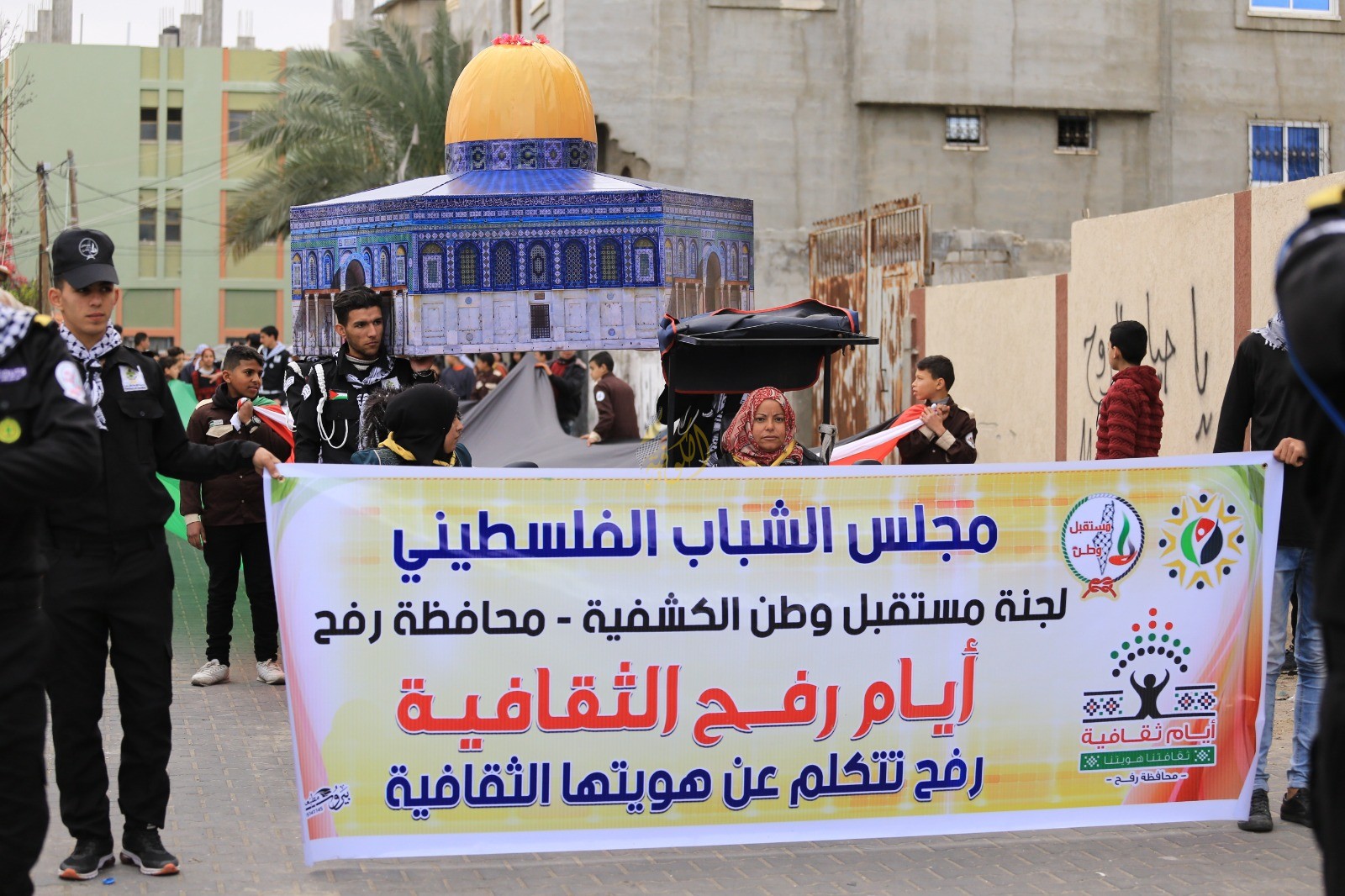 ونظمت لجنة مستقبل وطن الكشفية، التابعة لمجلس الشباب الفلسطيني، مسيرا كشفيا ضخما في محافظة رفح، ضمن فعاليات "أيام رفح الثقافية".