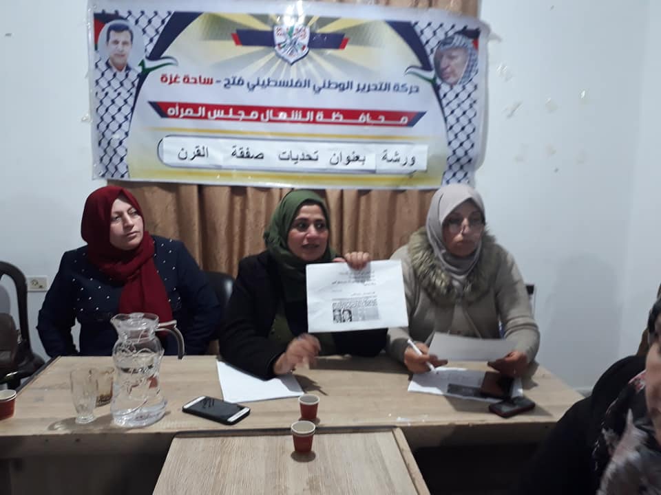 غزة: نظم مجلس المرأة في تيار الإصلاح الديمقراطي بحركة فتح، اليوم الأحد، لقاءً سياسياً في محافظة شمال غزة، بعنوان "تحديات صفقة القرن".