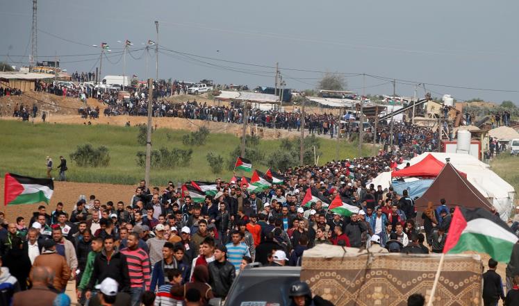 ودعت الهيئة الوطنية العليا لمسيرة العودة وكسر الحصار، الجماهير الفلسطينية للمشاركة في فعاليات مسيرات العودة التي ستنطلق بعد العصر اليوم في مخيمات العودة كافة قرب "السياج الفاصل" شرق قطاع غزة.