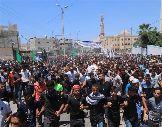 جماهير غفيرة تودع شهداء رفح الثلاثة