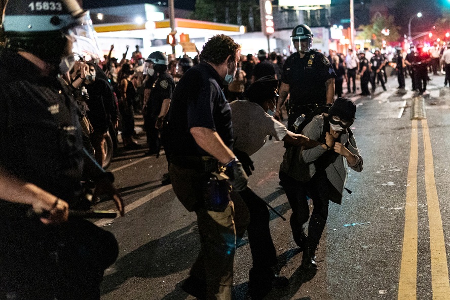 ولفظ فلويد أنفاسه بعد أن بقي شرطي أبيض جاثما بركبته على رقبته لما يقرب من تسع دقائق يوم 25 مايو/أيار في مدينة منيابوليس، ليشعل ذلك من جديد قضية وحشية الشرطة ضد الأمريكيين من أصل أفريقي قبل خمسة أشهر من انتخابات الرئاسة.