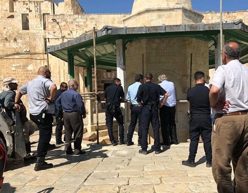 يشار إلى أن شرطة الاحتلال المنتشرة في الأقصى تعرقل وتمنع أي أعمال صيانة في الأقصى.