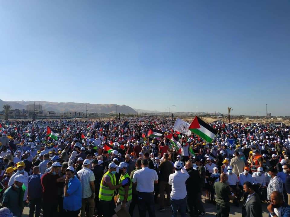 صور|| بمشاركة شخصيات دولية: الآلاف يتظاهرون في أريحا رفضا لخطة الضم