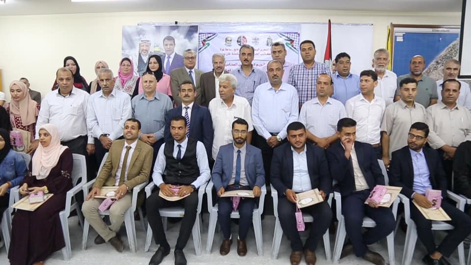خانيونس: نظمت لجنة المكاتب الحركية في تيار الاصلاح الديمقراطي بحركة فتح، "المكتب الحركي للمحامين"، حفل تكريم لكوكبة من المحامين الحاصلين على مزاولة مهنة المحاماة، في محافظة رفح.