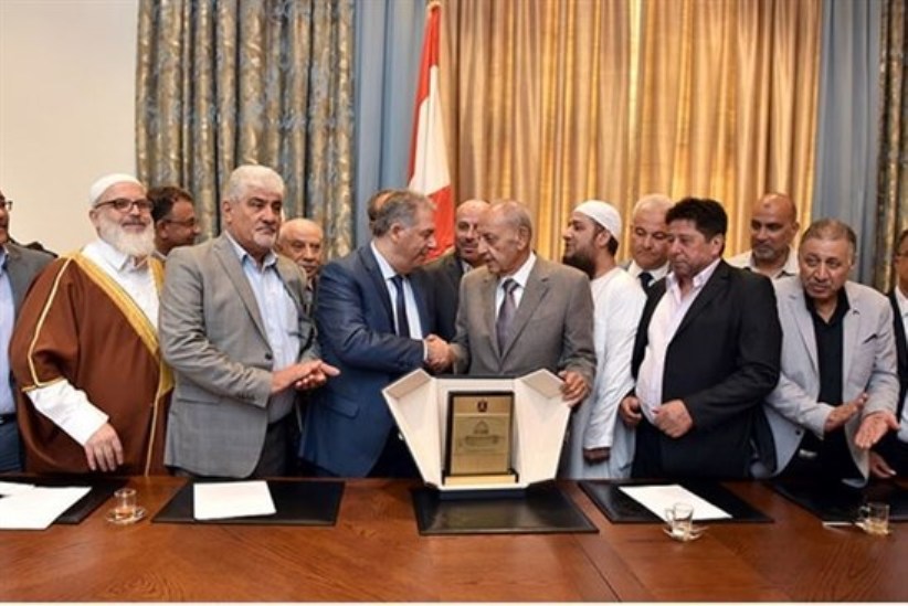 من جانبه أعلن أمين سر حركة التحرير الوطني الفلسطيني (فتح) في لبنان فتحي أبو العردات في تصريح باسم جميع الفصائل الوطنية والقوى الإسلامية الفلسطينية بعد لقائه بري الالتزام بالوثيقة التي تهدف إلى تعزيز العلاقات "الفلسطينية اللبنانية" و "الفلسطينية".