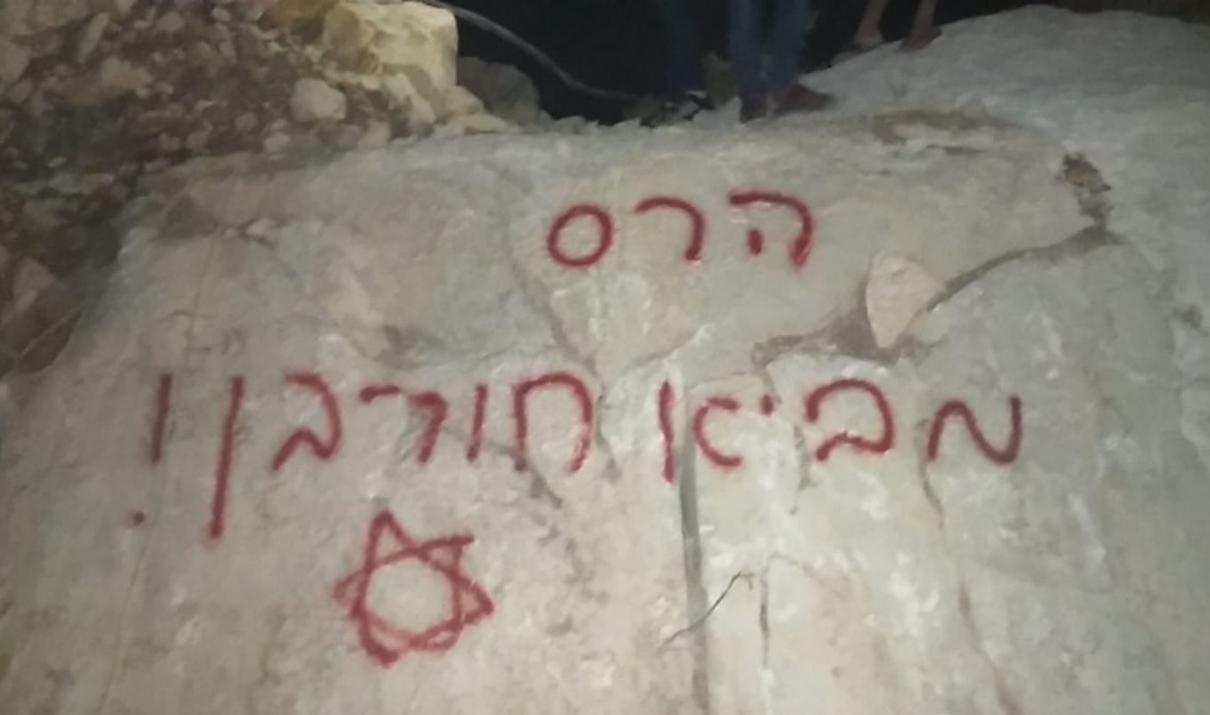 نابلس: مستوطنون يحرقون جرافة ويخطون شعارات عنصرية