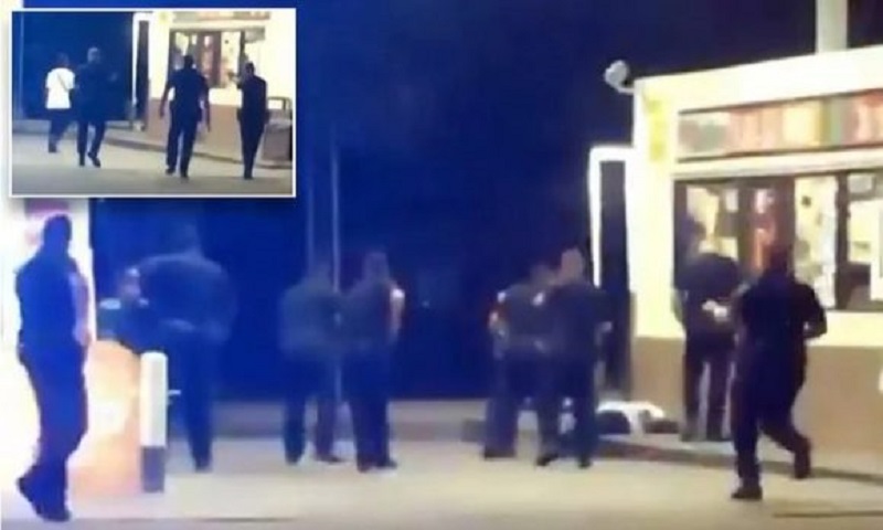 وأظهر مقطع مصور متداول على مواقع التواصل الاجتماعي، إحاطة 6 من رجال الشرطة للشاب أثناء محاولته دخول المتجر وتم إطلاق النار عليه (حوالي 10 مرات) من مسافة قريبة، فيما بدأت شرطة الولاية التحقيق بالحادث.