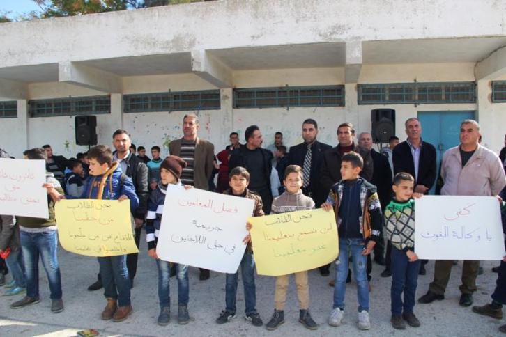 واستهجن المتظاهرون فصل أكثر من 160 مدرس في مدارس أونروا بالضفة الفلسطينية ووقف التوظيف في مجالي التعليم والصحة.