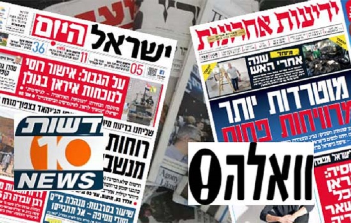 تل آبيب: مباحثات التوصل الى تهدئة بين إسرائيل وحماس بوساطة السفير القطري، واندلاع 42 حريقا بغلاف غزة نتيجة سقوط البالونات الحارقة، والتوتر بالشمال، تصدرت العناوين الرئيسية بوسائل الإعلام العبرية اليوم.