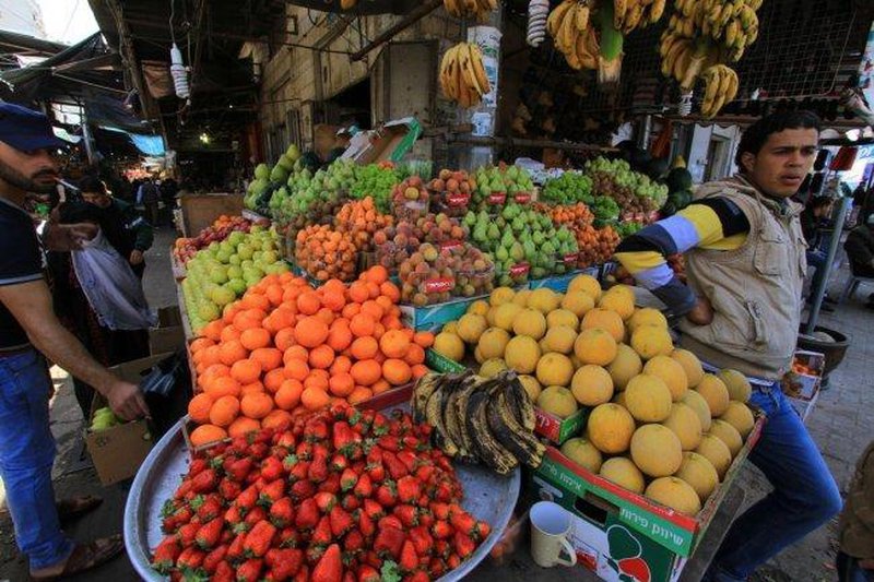 وسجلت أسعار السلع المنتجة من نشاط الزراعة والحراجة وصيد الأسماك انخفاضاً مقداره 2.48%، والتي تشكل أهميتها النسبية 32.14% من سلة المنتج، وذلك لانخفاض أسعار السلع ضمن نشاط المحاصيل غير الدائمة بمقدار 6.98%، نتج هذا الانخفاض بصورة رئيسية عن انخفاض أسعار معظم الخضراوات حيث بلغ متوسط سعر الملوخية 1.75 شيقل/كغم، ومتوسط سعر البامية 7.89 شيقل/كغم، ومتوسط سعر الثوم الجاف 5.86 شيقل/كغم ، ومتوسط سعر اللوبياء 2.86 شيقل/كغم، ومتوسط سعر البندورة 1.50 شيقل/كغم، وأسعار السلع ضمن نشاط زراعة المحاصيل الدائمة المعمرة بمقدار 1.04%، وذلك لانخفاض أسعار العنب ليبلغ بالمتوسط 4.00 شيقل/كغم، ومتوسط سعر التفاح 3.25 شيقل/كغم ، وأسعار السلع ضمن نشاط صيد الأسماك بمقدار 0.14%، على الرغم من ارتفاع أسعار السلع ضمن نشاط الإنتاج الحيواني بنسبة 0.37%، حيث بلغ متوسط سعر ماعز بلدي - حي 27.14 شيقل/كغم، ومتوسط سعر خاروف بلدي حي 25.52 شيقل/كغم، كما ارتفع سعر البيض الطازج – حجم 2 كغم – ليبلغ بالمتوسط 10.68 شيقل/كرتونة، على الرغم من انخفاض سعر الدجاج اللاحم الحي حيث بلغ بالمتوسط 7.84 شيقل/كغم.