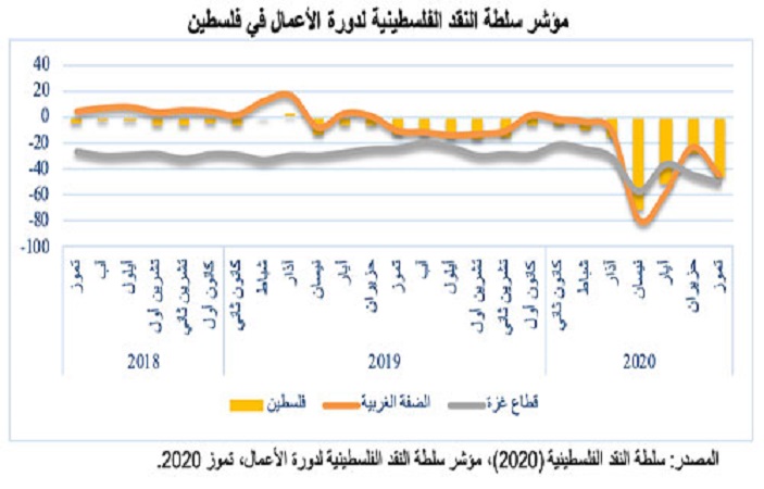 وتقدم المؤشر في الضفة الغربية على وجه التحديد، مسجلاً في آب -34.5 نقطة قياساً إلى حوالي -43.7 نقطة المرصودة في الشهر الفائت.