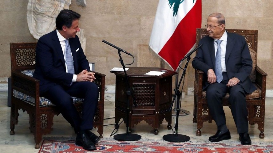 عون وكونتي يبحثان سبل إعادة إعمار بيروت
