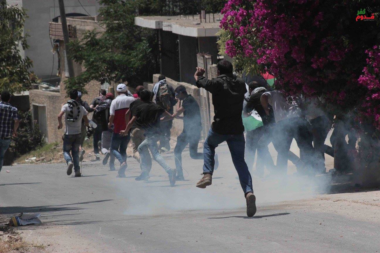 وأفاد منسق المقاومة الشعبية في كفر قدوم مراد شتيوي أن مواجهات عنيفة جدًا اندلعت مع عشرات من جنود الاحتلال حاولوا اقتحام البلدة تحت غطاء كثيف من إطلاق الرصاص الحي والمعدني المغلف بالمطاط وقنابل الغاز والصوت، مما أدى إلى إصابة شابين بالأعيرة المعدنية والعشرات بالاختناق عولجوا ميدانيًا.